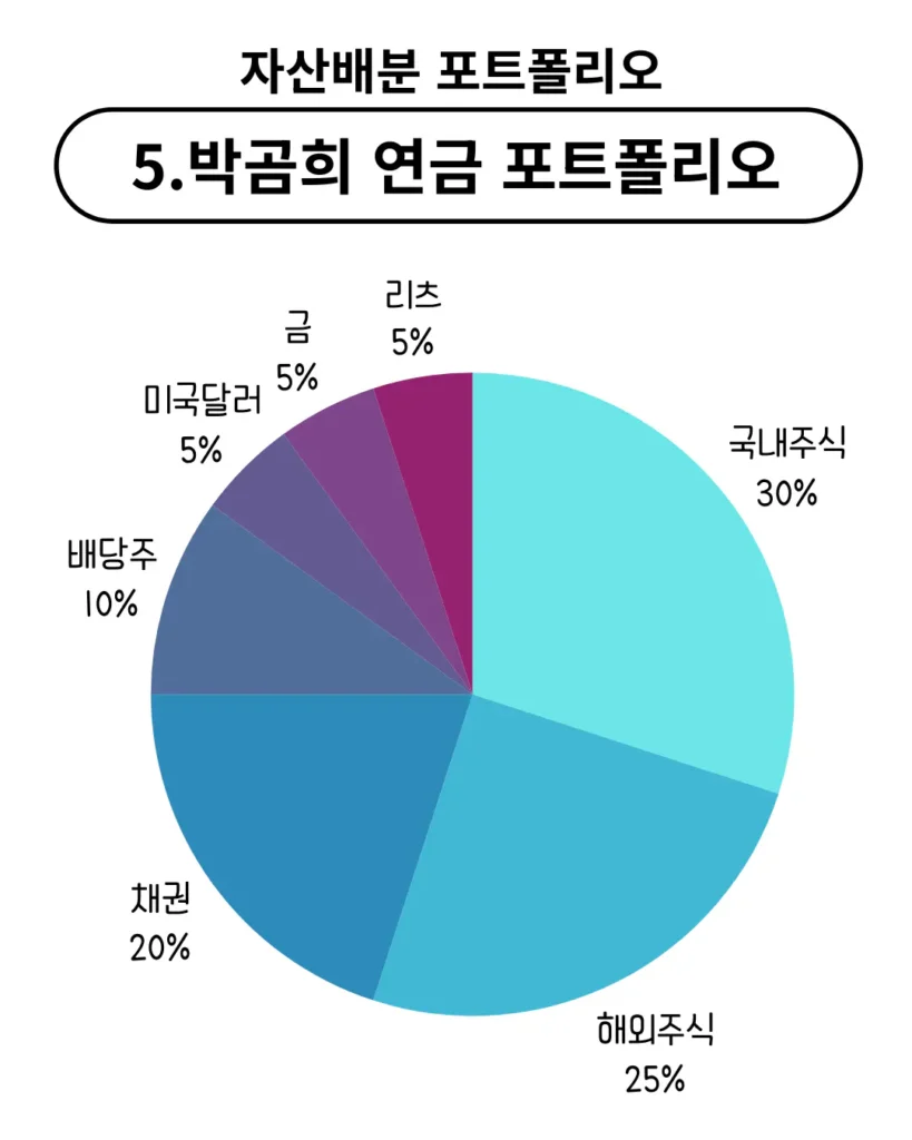 마지막으로 경제 유튜버 박곰희TV에서 만든 포트폴리오입니다. 저서 <연금부자수업>에서도 자세히 나오니 한번 읽어보시면 도움이 되실 겁니다.
