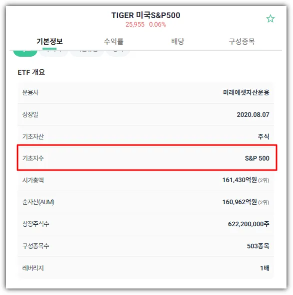 KODEX 미국S&P500이면 S&P 500 추종,TIGER 나스닥100이면 나스닥 100 추종 - 증권사 앱에서 ETF 검색 → 상품 정보 → “기초지수” 또는 “추종지수” 항목 확인
